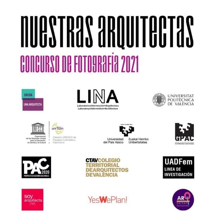 El presente concurso es organizado por Nuestras Arquitectas y con el apoyo de la Universitat Politècnica de València, los grupos de investigación, Grupo de Investigación en Patrimonio Construido (GPAC) y la Cátedra UNESCO Paisajes Culturales y Patrimonio de la Universidad del País Vasco, el programa GADU -Género, Arquitectura, Diseño, Urbanismo- del Instituto de la Espacialidad Humana de la Facultad de Arquitectura, Diseño y Urbanismo de la Universidad de Buenos Aires, Colegio Territorial de arquitectos de Valencia, LINA Plataforma, Un día | una arquitecta, Línea de investigación Urbanismo, Arquitectura y Diseño Feminista (CONICET), ARQSarean (red de mujeres profesionales de la Arquitectura, urbanismo y Patrimonio), Plataforma Patrimonio siglo XX y YesWePlan! Spain. Media Partners: ArchDaily, SoyArquitecta.net.