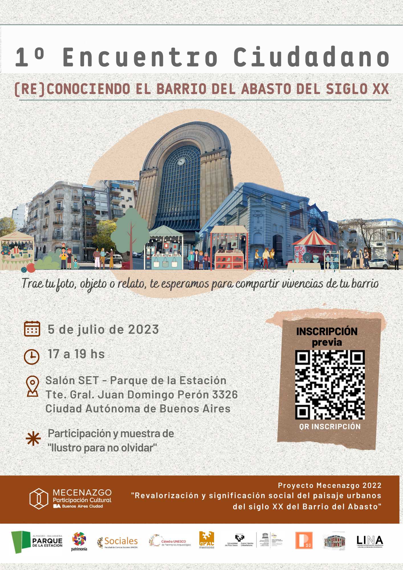 Este evento se encuadra dentro de la investigación «Revalorización y significación social del paisaje urbanos del siglo XX del barrio del Abasto» cuya investigadora principal es nuestra compañera Veronica Benedet. El mismo está financiado a través de la Convocatoria pública Mecenazgo 2022, promovida desde el Ministerio de Cultura de esta ciudad. Desde la plataforma patrimonio SXX, junto a los grupos de investigación GPAC y Cátedra UNESCO Paisajes Culturales y Patrimonio de la Universidad del País Vasco y PATRIMONIA-INCUAPA de la Universidad del Centro de la Provincia de Buenos Aires, formamos parte del equipo de asesores externos de la investigación.