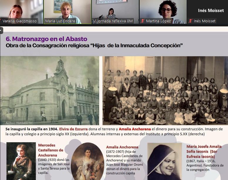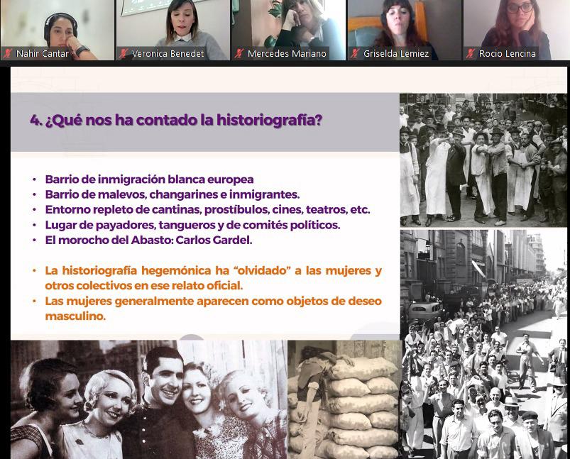 Veronica junto a María Luz Endere (UNICEN) hablaron del Proyecto Mecenazgo "Revalorización y Significación social en el Paisaje Urbano del Siglo XX del barrio del Abasto" y mostraron el importante protagonismo de las mujeres en la primeras décadas del siglo XX en este barrio de la capital de Argentina.